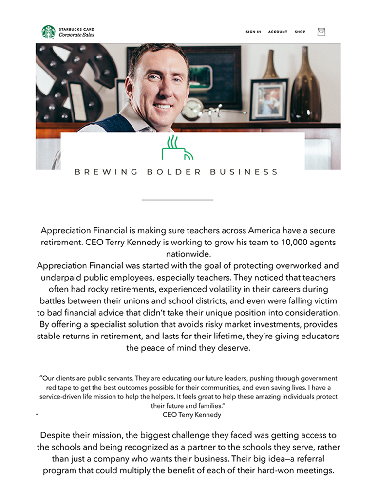 Focused on providing solutions for all areas of your life, including insurance and retirement planning, the birth of Appreciation Financial happened in a classroom. Kennedy saw the 403 market as under-served and deserving of help. The volatility of public retirement systems, constant union v. school district battles that often impact teacher retirements, create a niche market in need of a professional sales-force to educate the educators and help them retire with dignity.